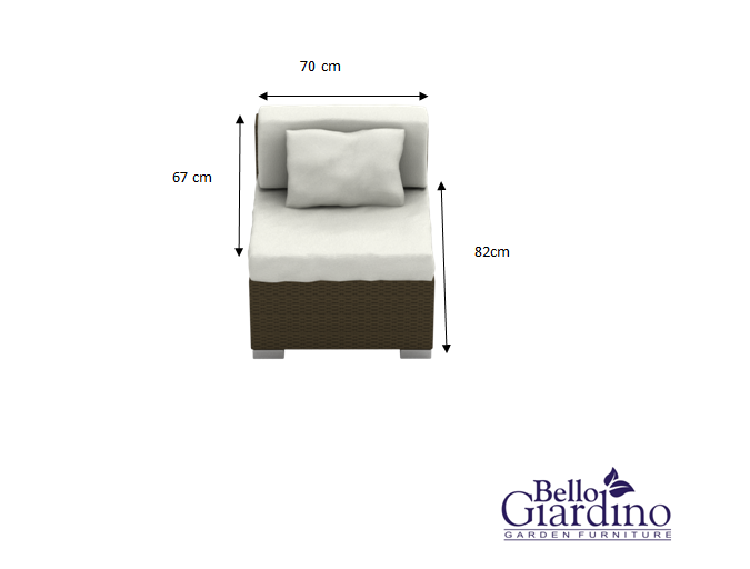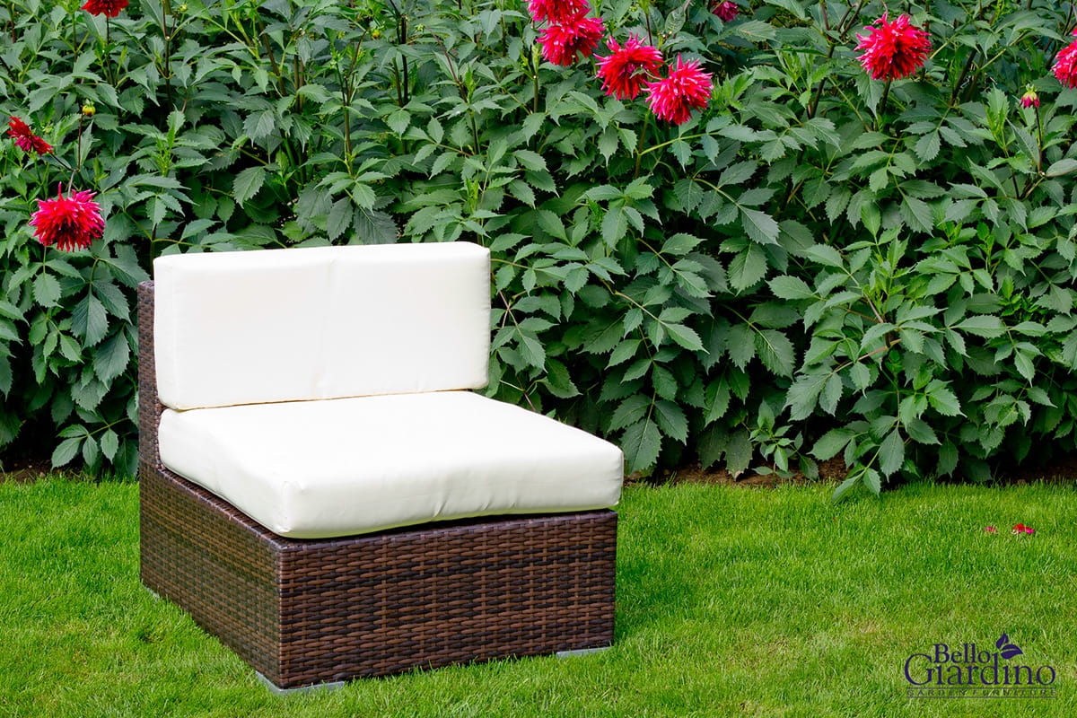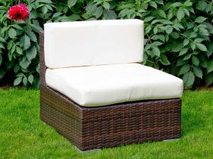 Nowoczesny i elegancki moduł środkowy kapitalnie sprawdzi się w przydomowych ogrodach, na tarasach i balkonach. Może pełnić funkcję dodatkowego modułu w zestawie mebli wypoczynkowych. Wykonany został z rattanu syntetycznego,