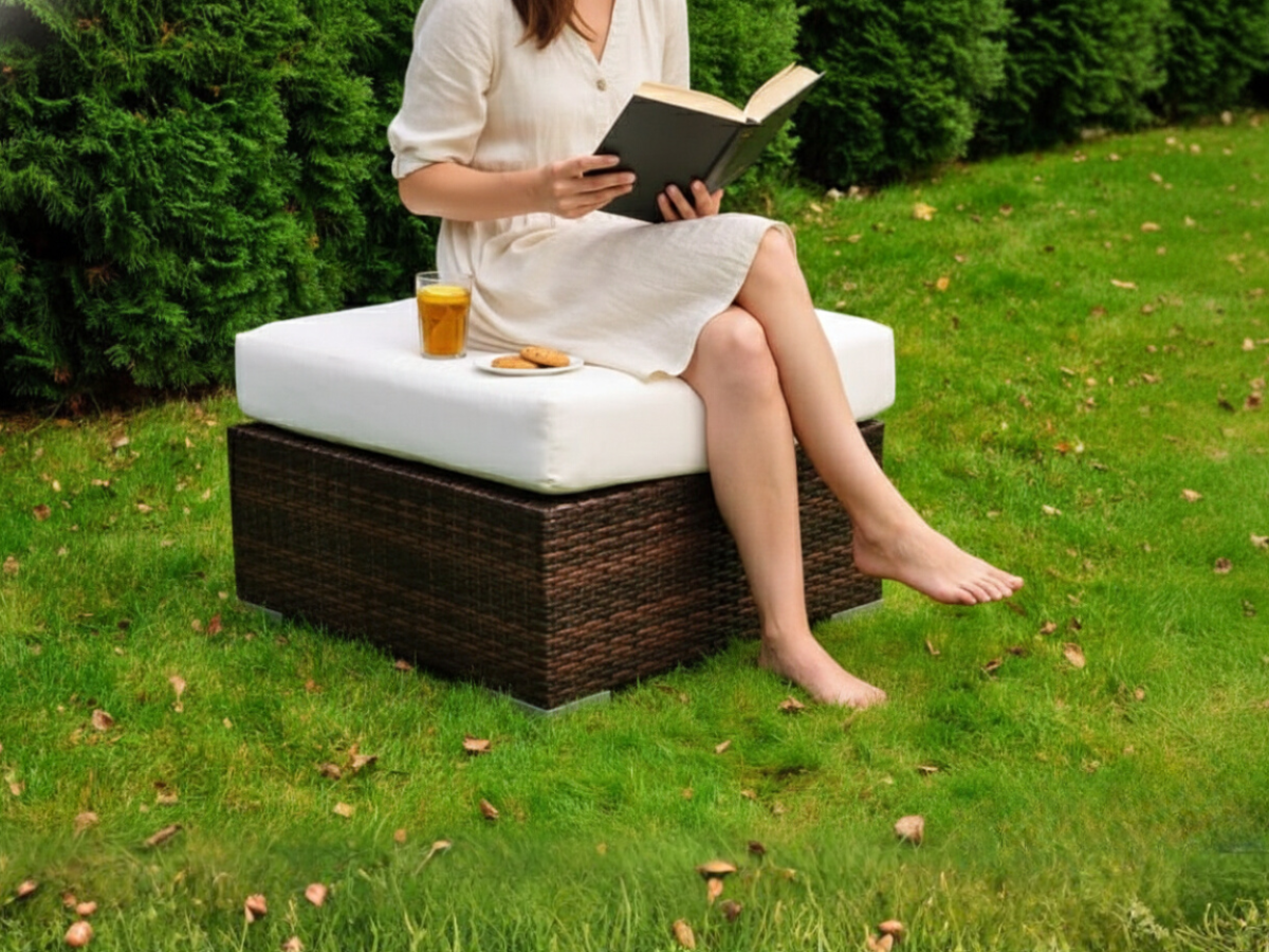 Pufa z technorattanu dzięki imponująco grubej poduszce i solidnej, aluminiowej ramie udowadnia, że luksus tkwi w detalach – niezależnie od tego, czy służy jako przedłużenie sofy, samodzielne siedzisko, czy elegancki podnóżek.
