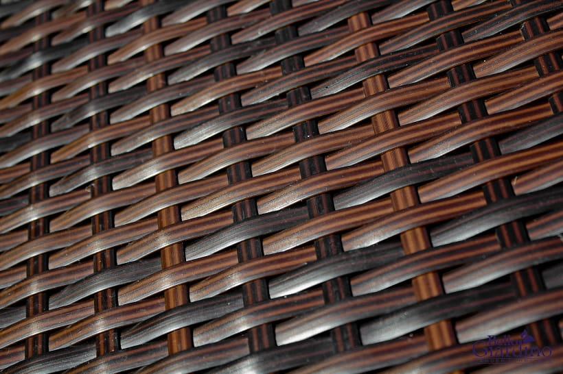 Ekskluzywna brązowa plecionka, o niejednolitym kolorze i gładkiej strukturze, która do złudzenia przypomina naturalny rattan, zachowując przy tym wszystkie zalety nowoczesnych tworzyw syntetycznych