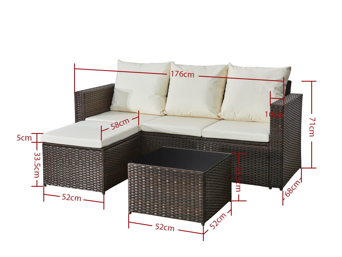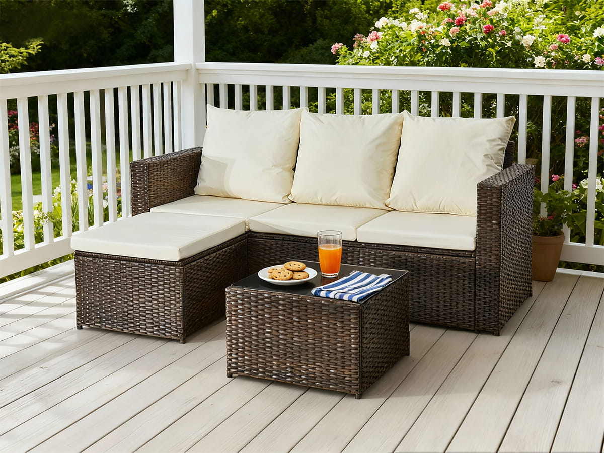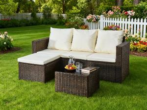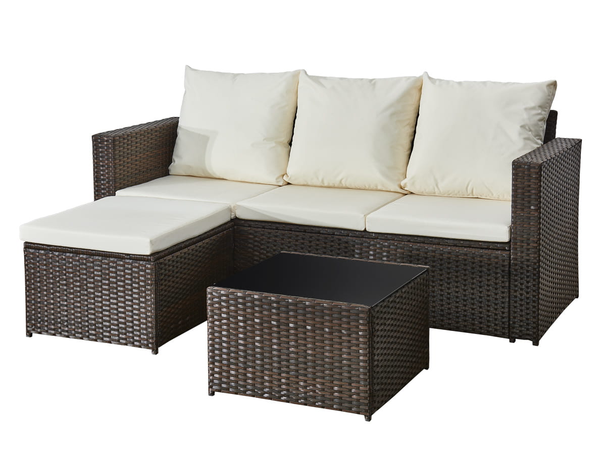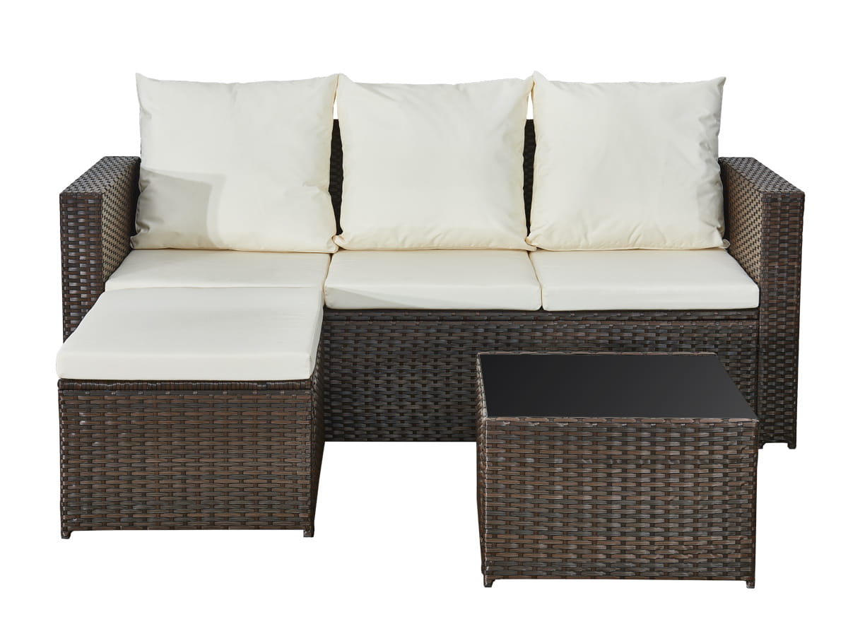 Narożnik ogrodowy (3-osobowa sofa, pufa, stolik) OTTIMO brązowy