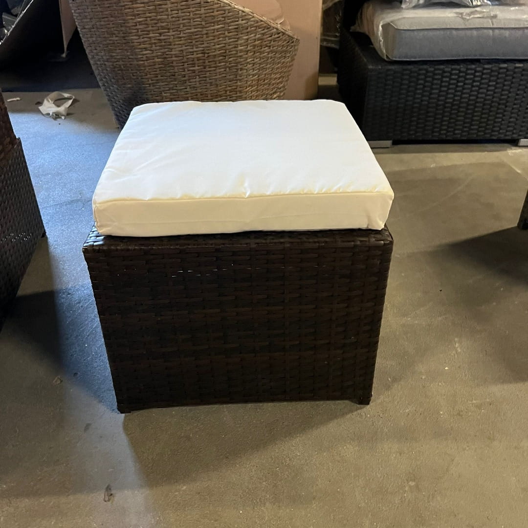 Pufa pochodzi z ekspozycji, kolor poduszki w kolorze ecru