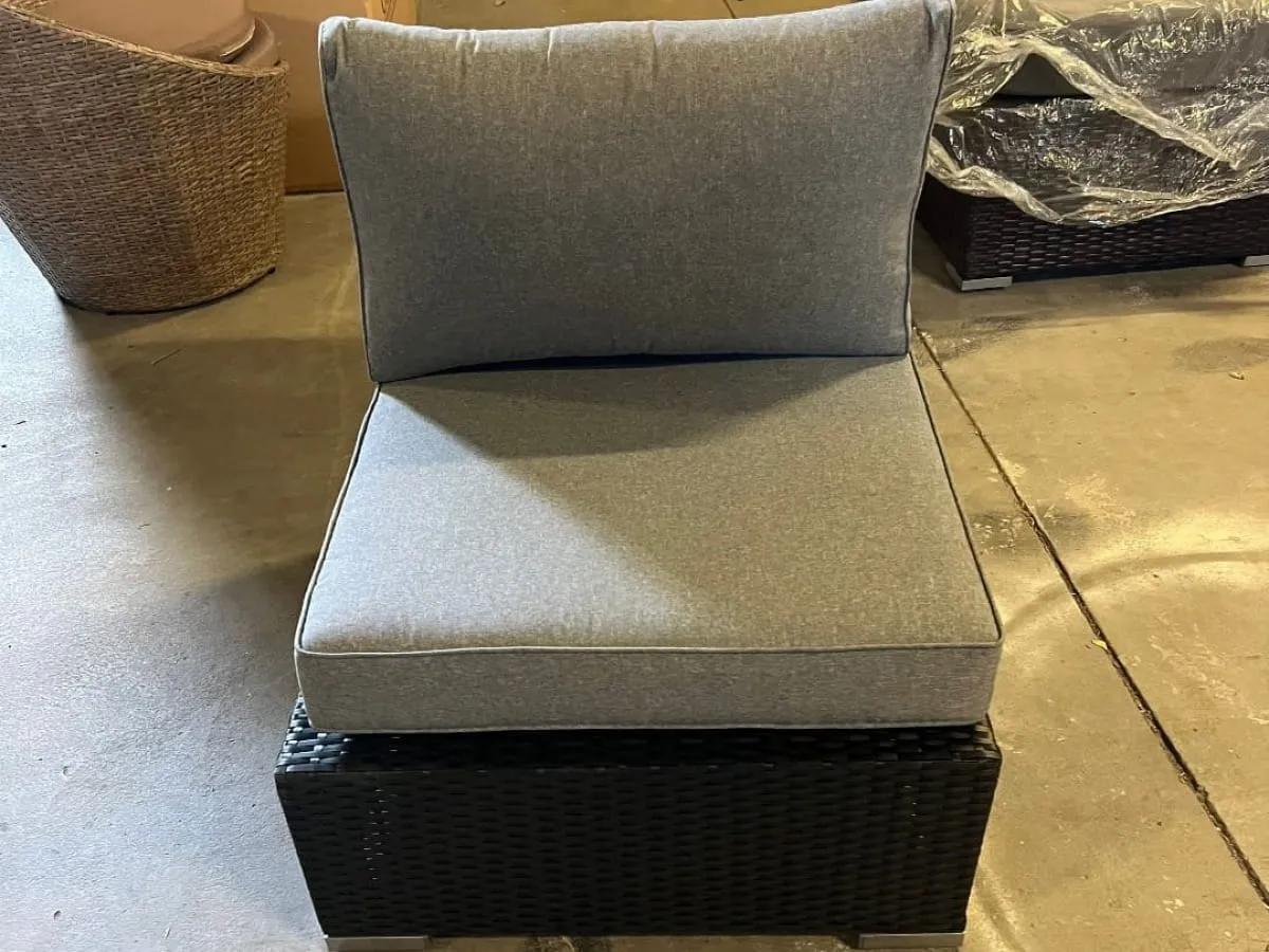 Siedzisko z czarnego technorattanu z szarą poduszką