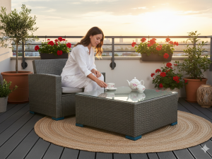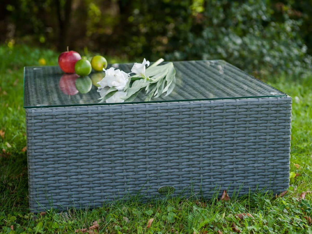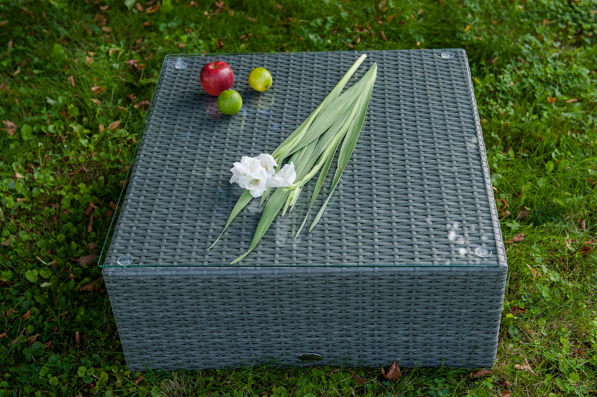 Ekskluzywny stolik kawowy z technorattanu w odcieniu szczotkowanej szarości to kwintesencja nowoczesnego stylu lounge zamieni Twój taras w prestiżową strefę wypoczynku, gotową do użytku w mgnieniu oka.