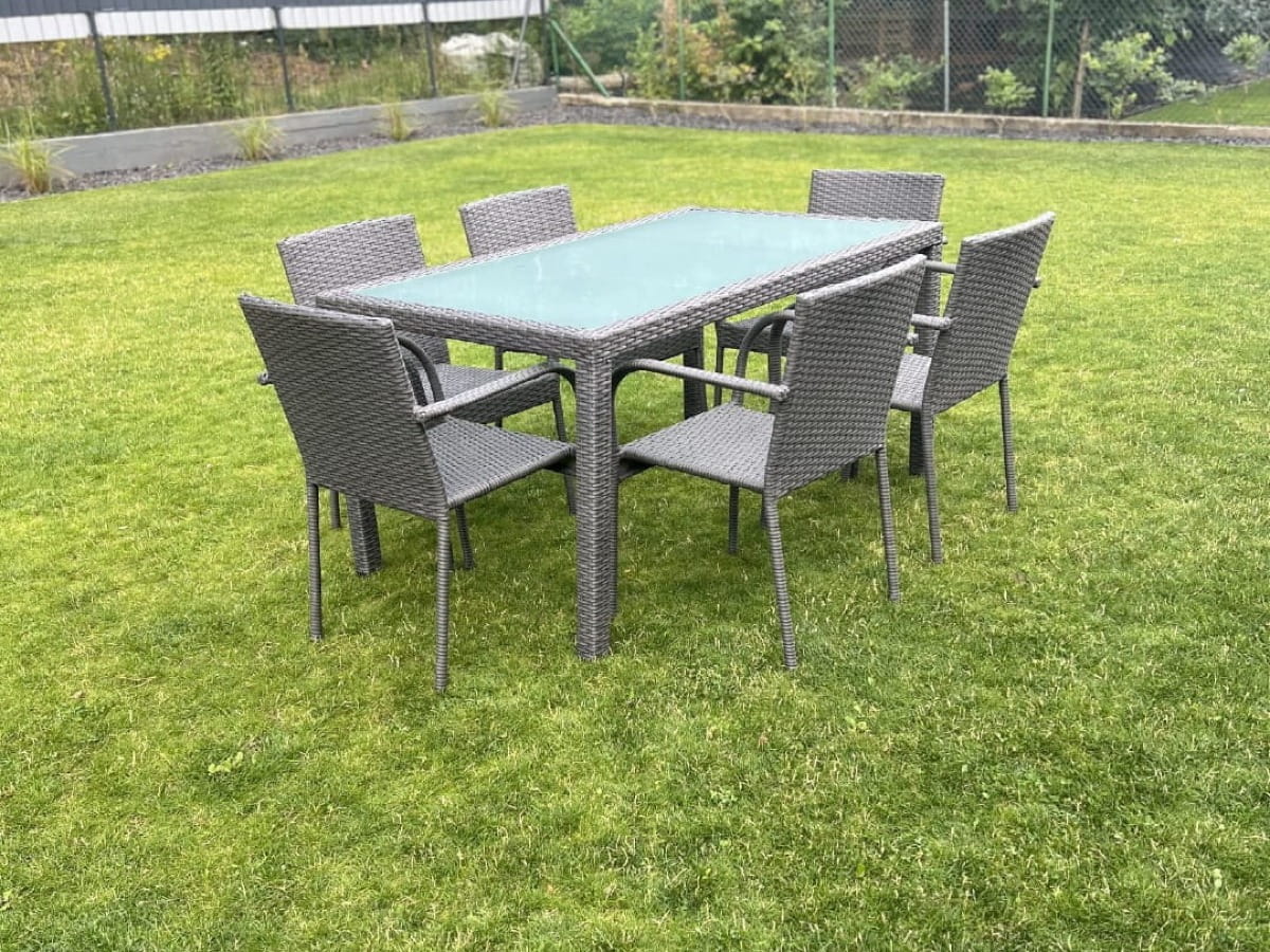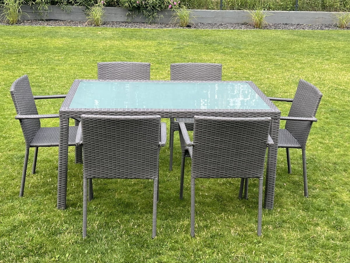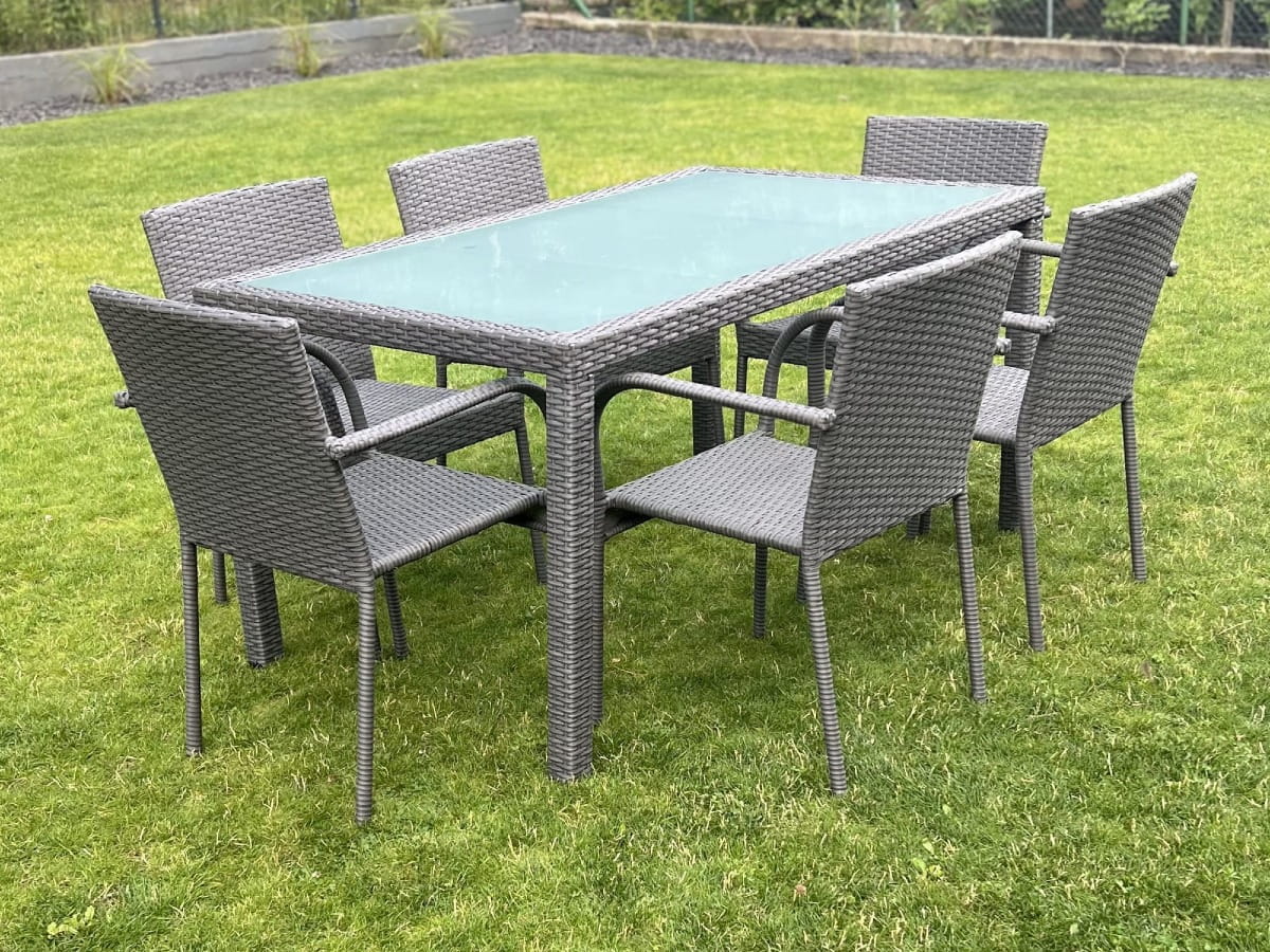 Zestaw mebli obiadowych AVVICENTE szary technorattan outlet
